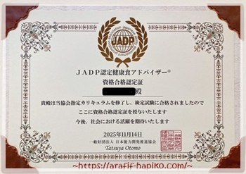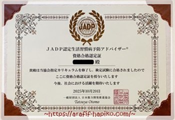 生活習慣病予防アドバイザー/健康食アドバイザー資格を取得しました